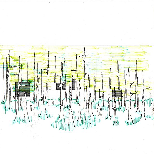 PLAYGROUND DE PAJARERAS - un territorio para jugar en la naturaleza: pajarera andamio + pajarera mueble + pajarera axial