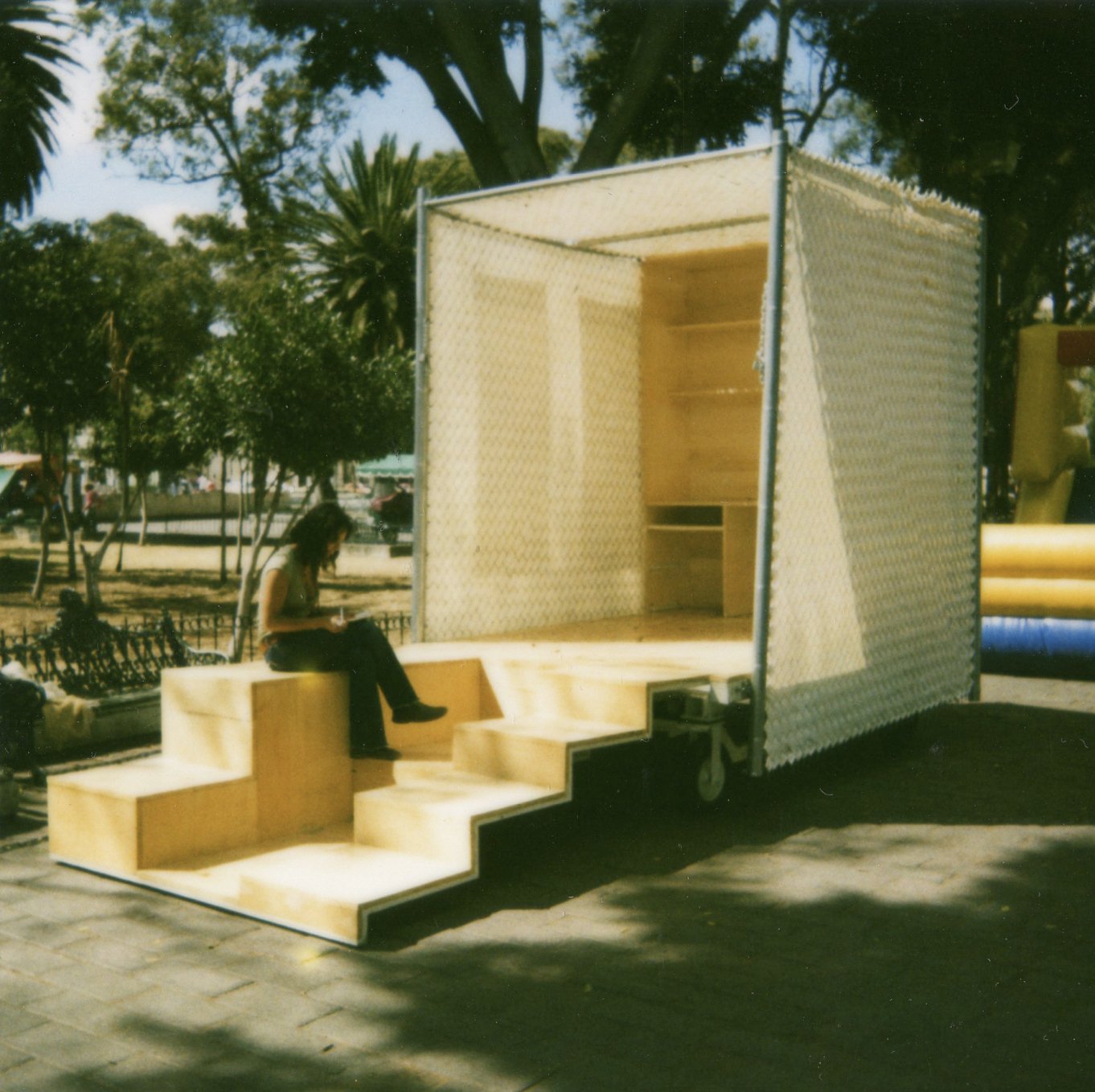 BIBLIOTECA MÓVIL - un cubo sobre ruedas que se abre al público